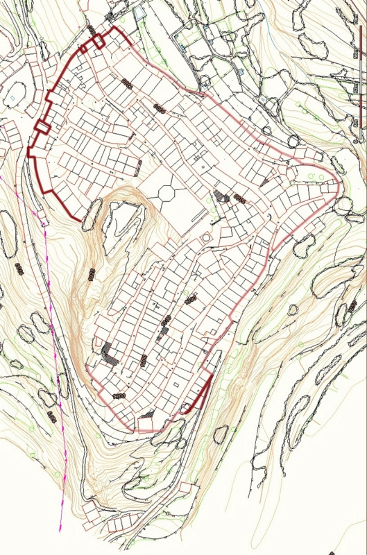 El trazado de la muralla discurría por la calle Portal (que es en la que se concentran la mayor parte de los elementos conservados), la calle Baja, calle Empedrada, trasera de edificios de calle Tres Rubielos (con interesantes lienzos visibles) y girando por la esquina occidental del casco urbano hasta el cerro del Castillo.