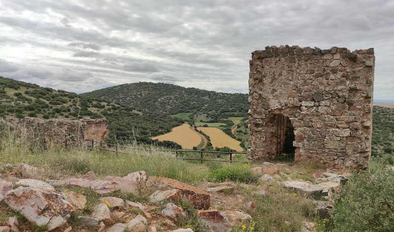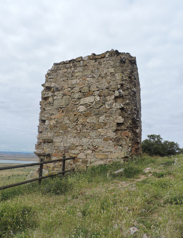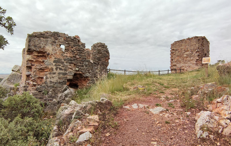De estas quedan las dos más cercanas a la población, ya que la tercera, que ocupaba la posición más alta, ha desaparecido y únicamente se pueden apreciar sus cimientos. Se trata de dos torres cuadradas con obra de mampostería y de diferente tamaño; la situada al oeste parece ser la principal por su mayor envergadura y empaque también es la mejor conservada; sus medidas se aproximan a los 5 metros de lado y aunque ha perdido altura, llega a los 6 y su remate pudo ser almenado. La puerta de ingreso mira intramuros, es adintelada y sin ningún tipo de ornamentación. La otra torre se encuentra mucho más deteriorada y ha perdido parte de sus muros; se puede apreciar el hueco de la puerta que al igual que la otra, mira hacia el centro del recinto.